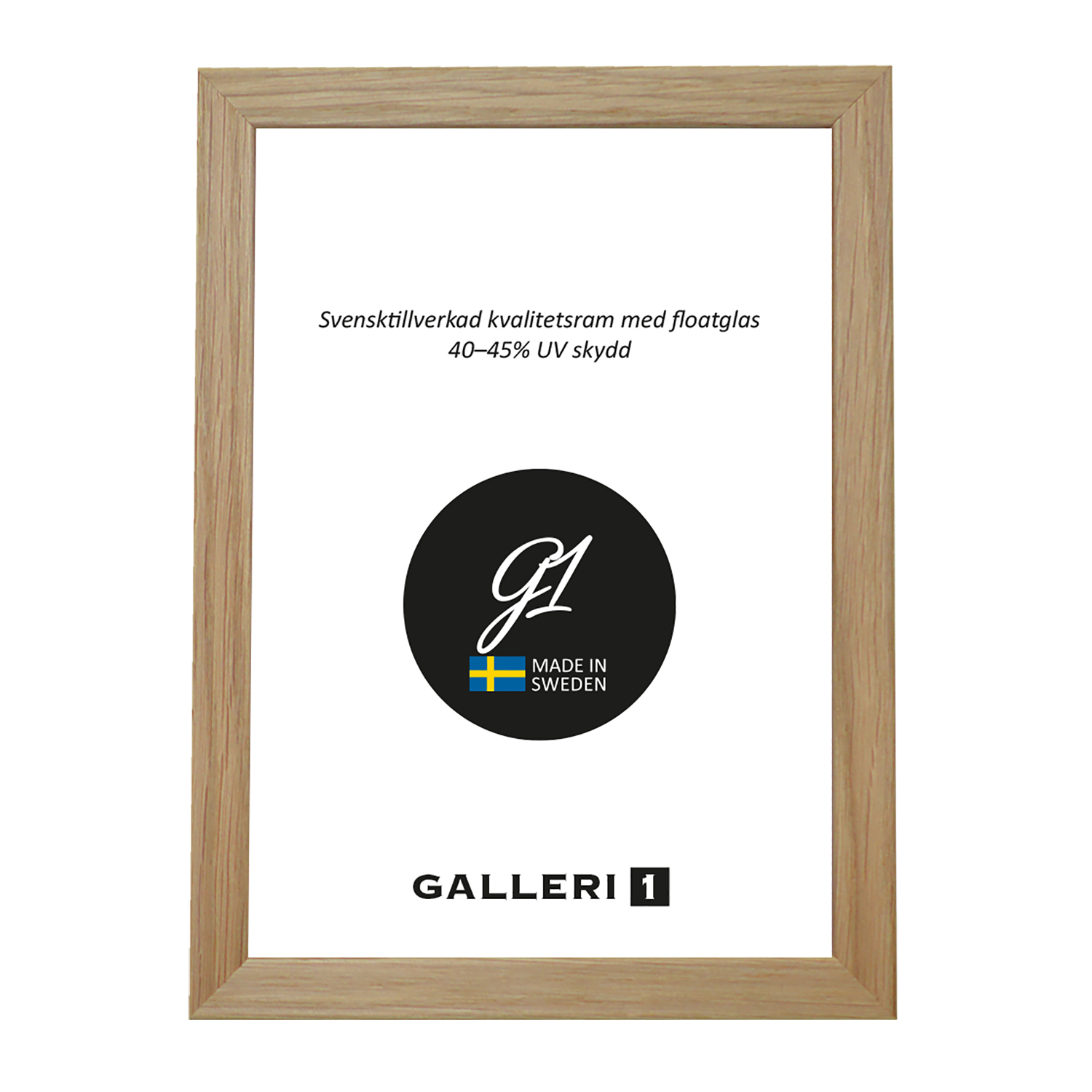 Svensktillverkade ramar i högsta kvalité. Äkta trä och riktigt glas. Endast 13 mm bred gör den till en neutral ram som låter motivet hamnar i fokus. Ramarna levereras med floatglas och bakstycke med upphängningsöglor för både vertikal och horisontal placering på vägg.